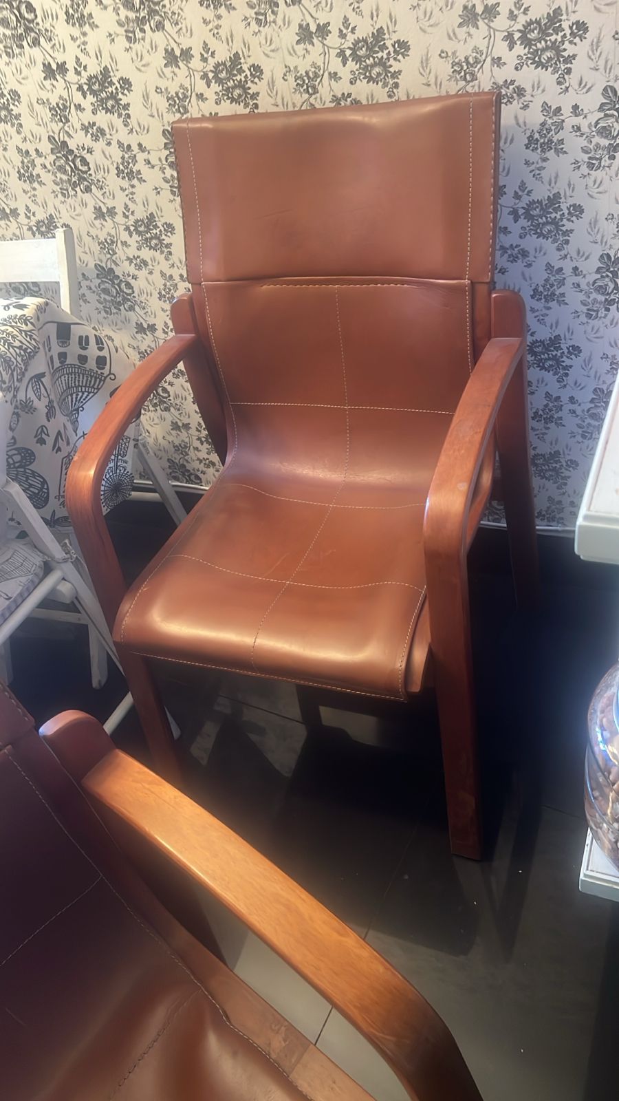 4 lindas sillas de cuero y madera.